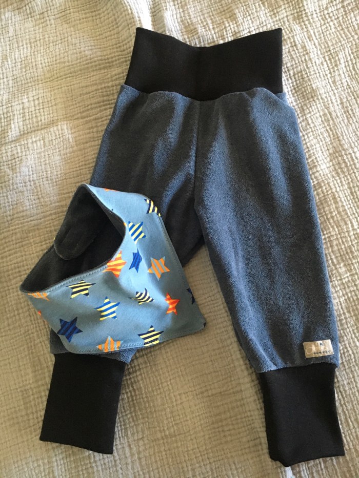 Sie sind aus Jersey gemacht. Die Stoffe sind unterschiedlich dick und daher sind die Hosen für kalte Tage und auch für die Übergangszeit geeignet.